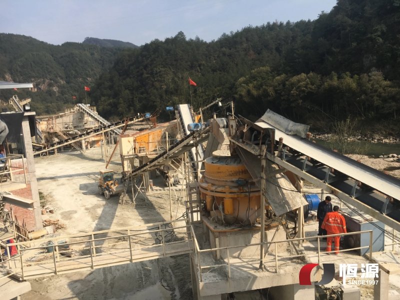 河卵石生产流程为以0-40mm的碎石(砾石)为原料,在生产线配置上采用立轴冲击式破碎机(制砂机),此破碎机是上海恒源新型制砂机,具有破碎效率高(具有细碎、粗磨功能)、结构简单、安装维修方便,运行成本低、产品粒型优异(呈立方体,针片状含量极少)的特点。